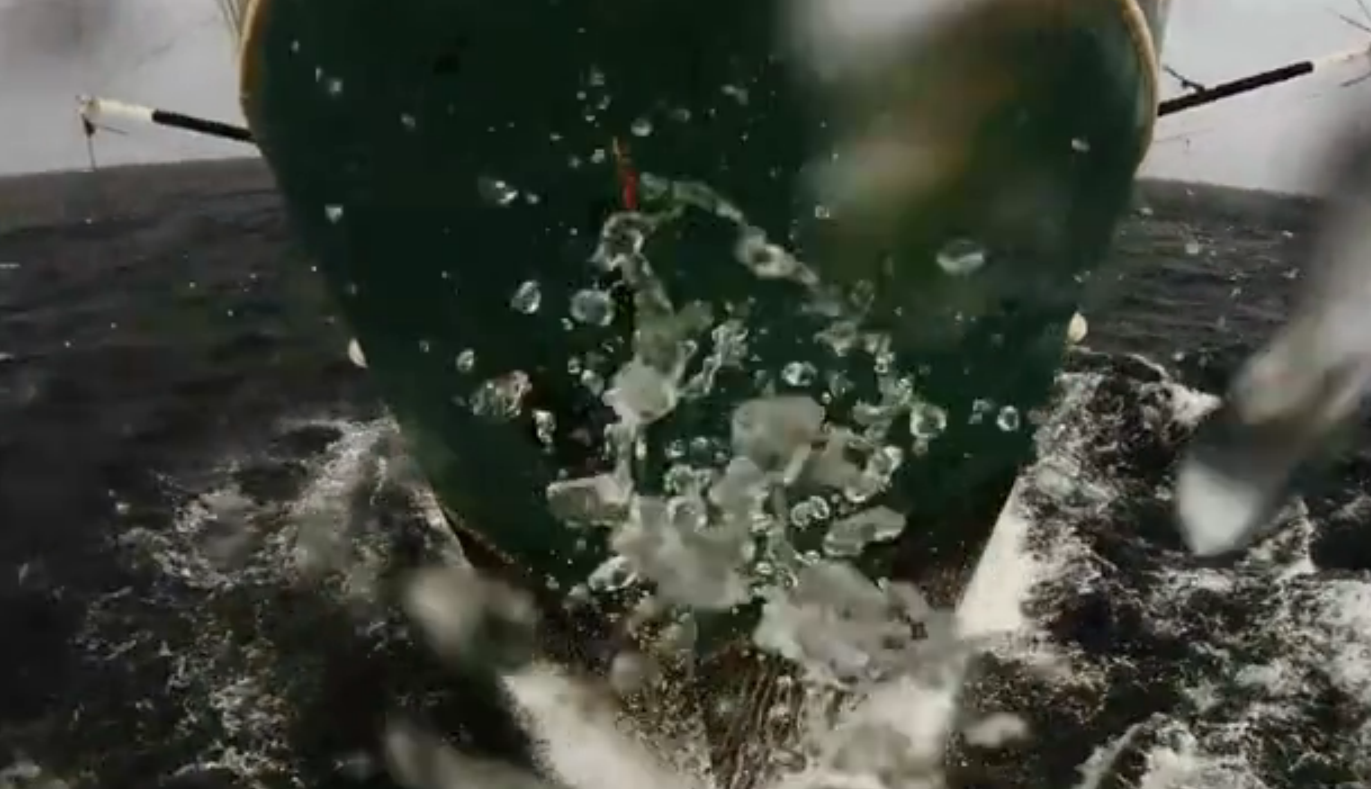 There are many things formally fascinating about this film – the long opening sequence, for example, renders editing meaningless, as one may try in vain to spot the cuts between the abstract images or the constantly reconfigured camera view on deck – but it is at its most effective when the grotty digital image captures colors and dancing swathes of light above and below the ocean in ways that make them both recognizable and surreally decontextualised, and ends with the wonderfully simple but hypnotic device of upending a suspended camera, so that gulls fly upside down beneath white flashes of seafoam. The credits commemorate various ships lost in these waters off New Bedford, and the sense of the hard work being done in a world of violent motion and unemotional slaughter is ever present, but it plays second fiddle to the leviathan’s boiling cauldron of color, light and sound.